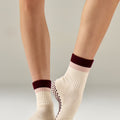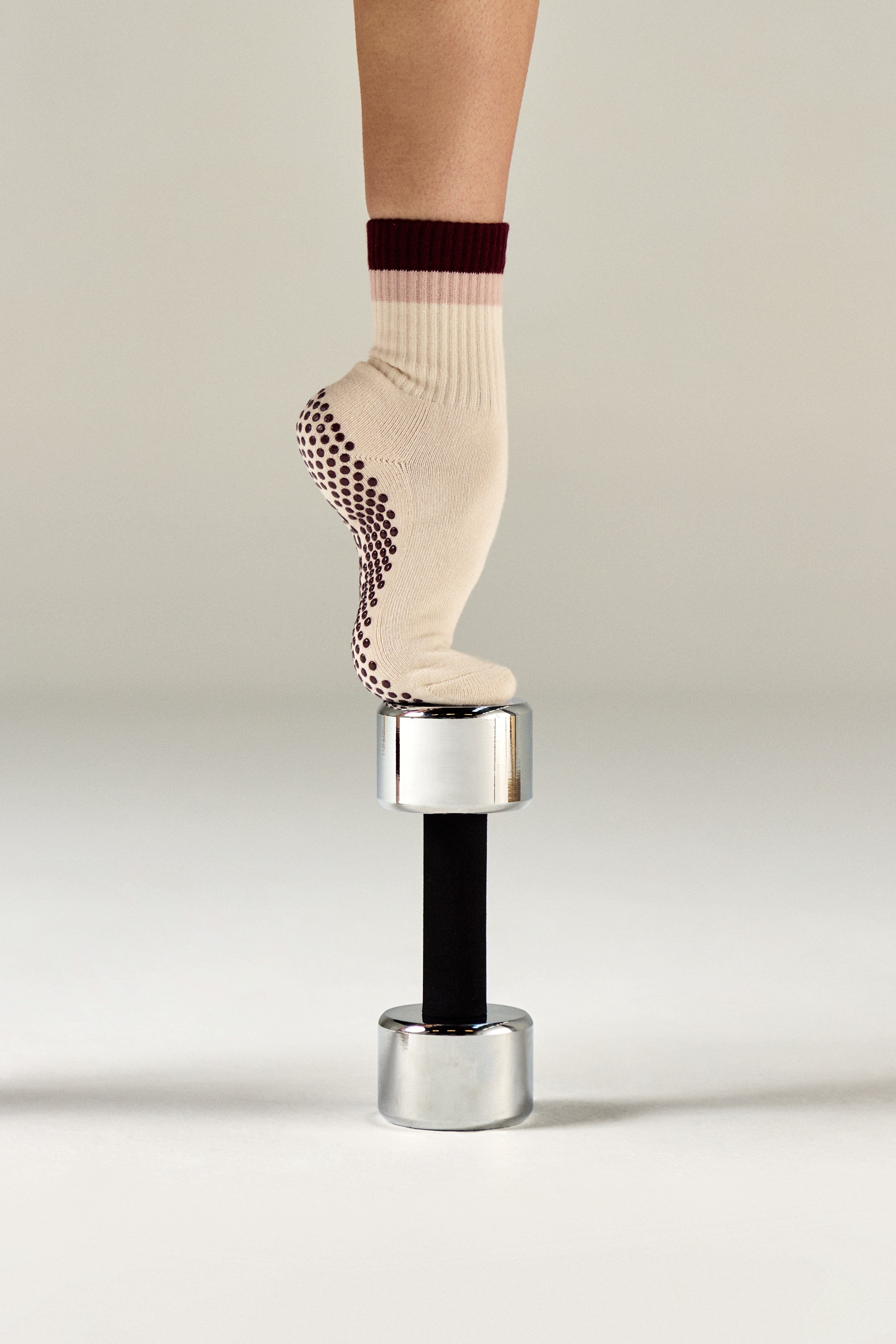Classic Crew Pilates Grip Sock - Pink/Burgundy