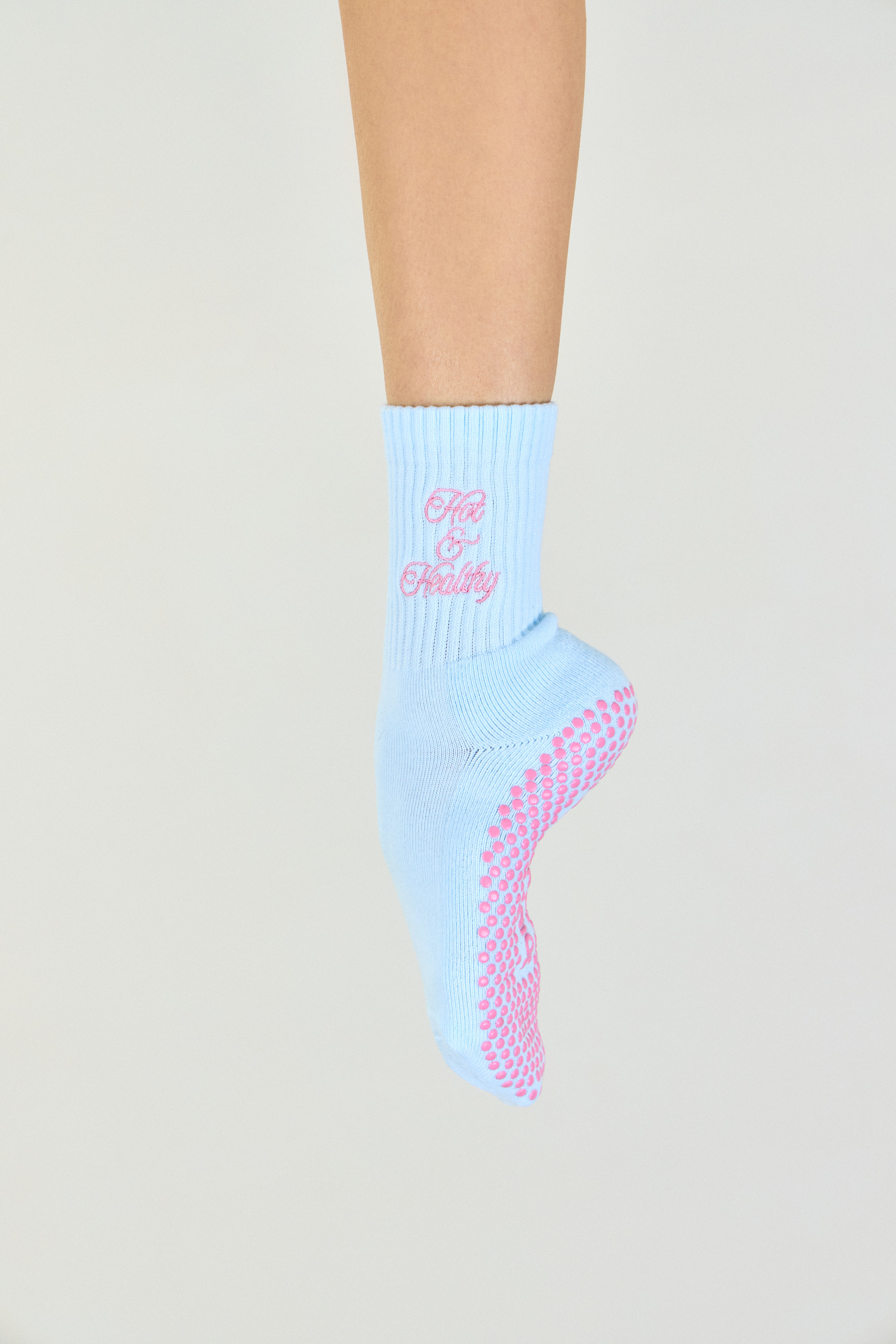 Inspired by our Retro Crew Grip Socks, the Hot & Healthy Socks add a playful twist to your workout gear. Featuring the fun phrase "Hot & Healthy" and our signature Club Martyn grip, these socks will keep you steady while you stretch, bend, and move in class.