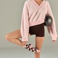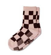 Checkered Crew Pilates Grip Sock - Pink/Chocolate