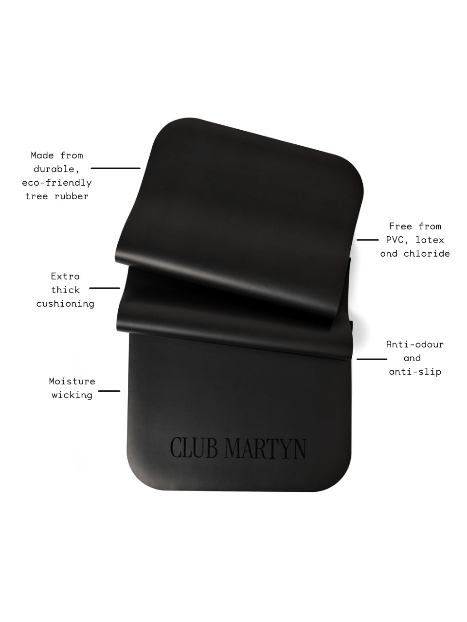 Meet the signature Club Martyn vegan leather yoga mat. Designed to support your every move, the Signature Club Martyn Yoga Mat is crafted from thick, durable, eco-friendly tree rubber and features an anti-slip, matte finish. Ideal for yoga, pilates and HIIT, the moisture-wicking and anti-odour surface will keep things fresh and comfortable during your workouts.