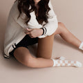 Inspired by our best selling Retro Crew Grip Socks, the Checkered Crew Grip Sock are the perfect pair of socks to add style to your workout look. Featuring a bold check print and a ribbed cuff, these socks will stay in place whilst you stretch and move during class. Made from a breathable cotton fabric, and featuring our signature "Join the Club" grip, these retro chic socks will help eliminate any slipping or sliding during your workout.