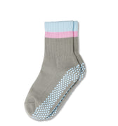 Classic Crew Pilates Grip Sock - Pink/Grey