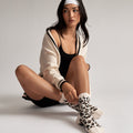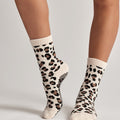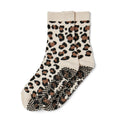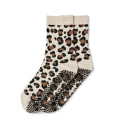 Leopard Crew Pilates Grip Sock - Beige