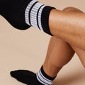 Inspired by a classic sports sock, the Retro Crew Grip Sock are the perfect pair of socks to add style to your workout look. Featuring an iconic sport stripe and a ribbed cuff, these socks will stay in place whilst you stretch and move during class. Made from a breathable cotton fabric, and featuring our signature "Join the Club" grip, these socks are the perfect blend of sporty chic and will help eliminate any slipping or sliding during your workout.