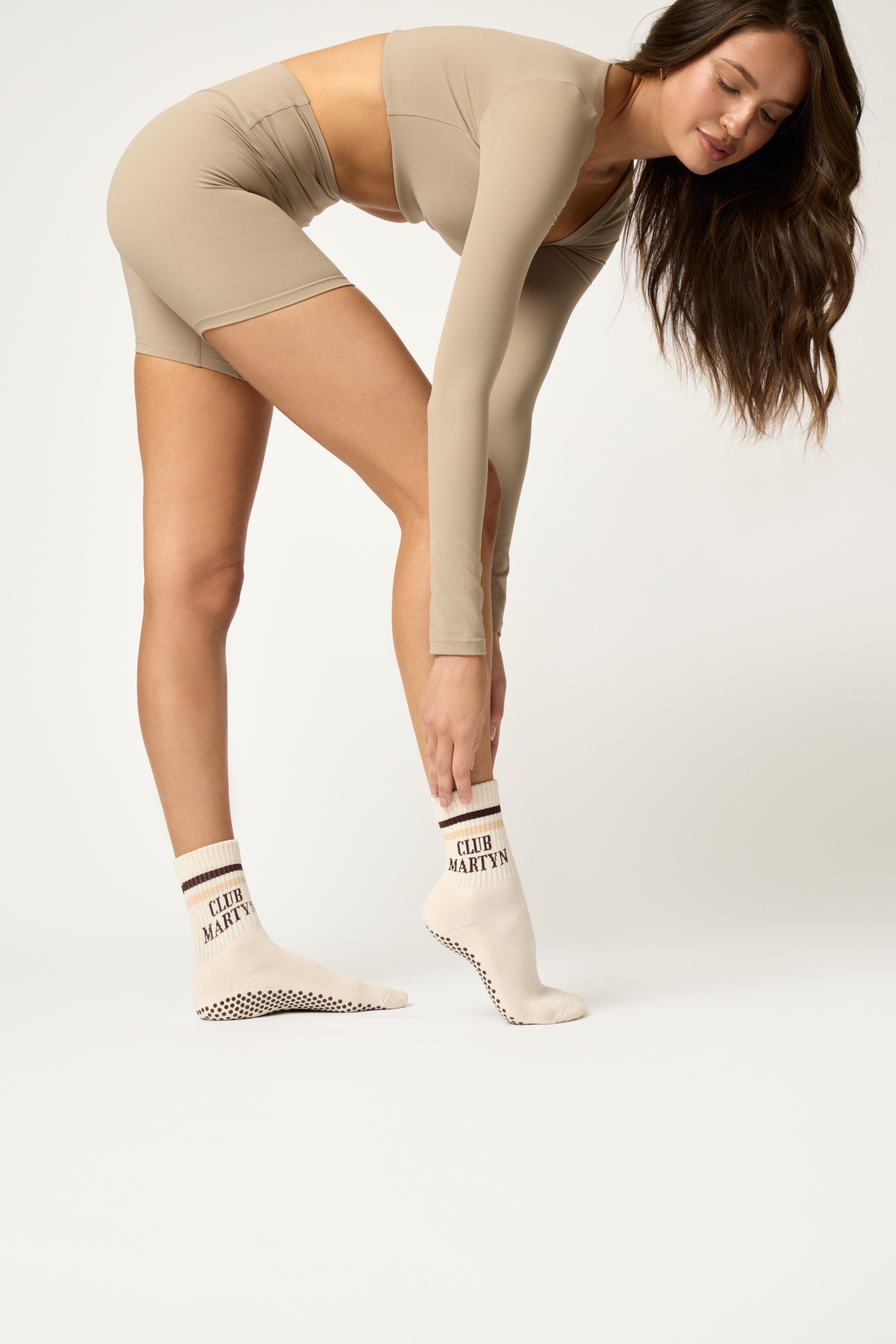 Introducing Club Martyn's signature crew sock. Featuring the iconic Club Martyn logo and signature "Join the Club" grip, these socks will stay in place whilst you stretch and move during class. Made from a breathable cotton fabric, these socks are the perfect blend of sporty chic and will help eliminate any slipping or sliding during your workout.