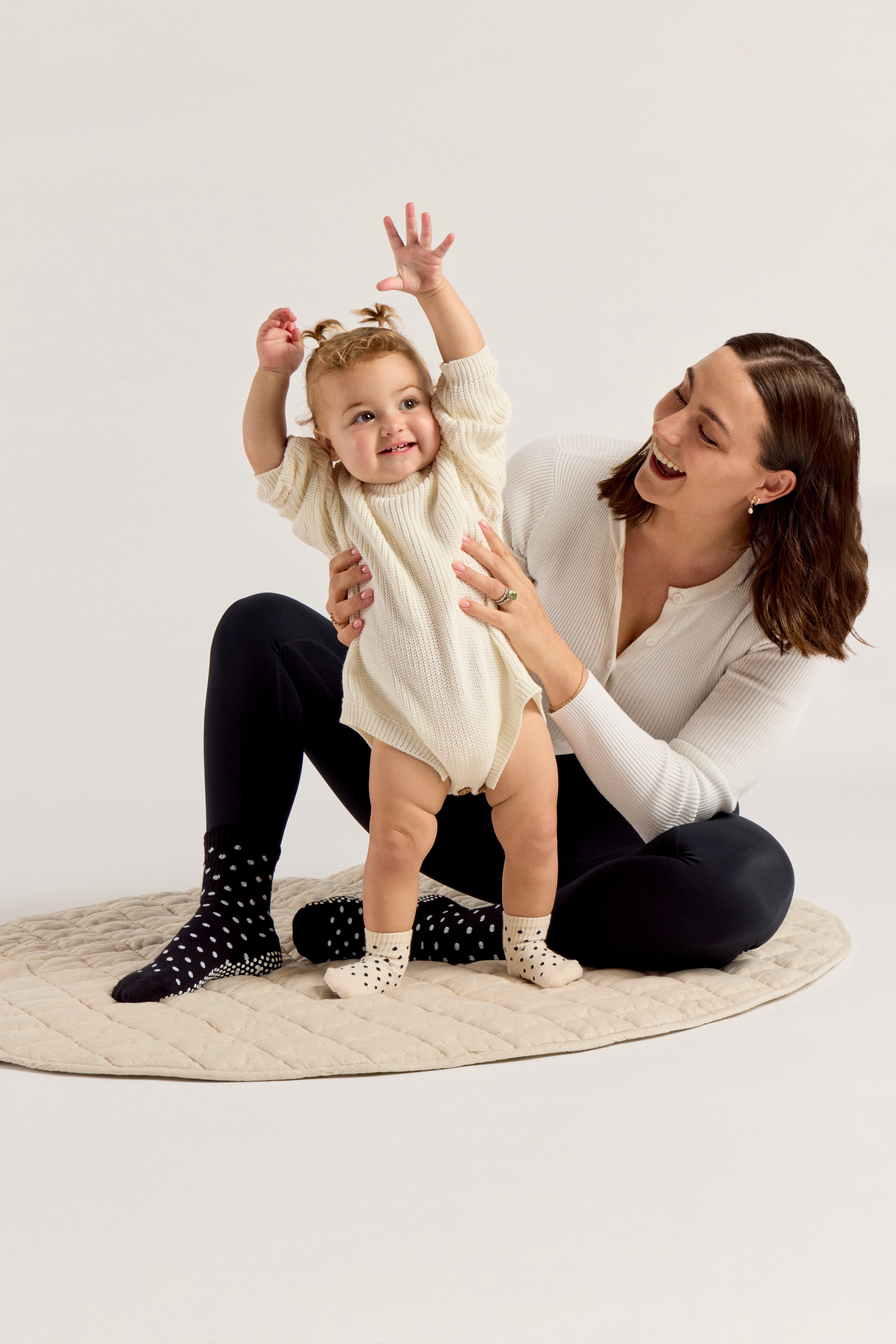 Our Pilates grip socks just got a whole lot cuter. Designed to match Mum's grippy socks, these adorable baby grip socks make twinning during class extra special! Crafted from super soft, breathable cotton and featuring our signature Club Martyn grip, they will keep little feet comfy whilst assisting babies as they transition from crawling to walking.
